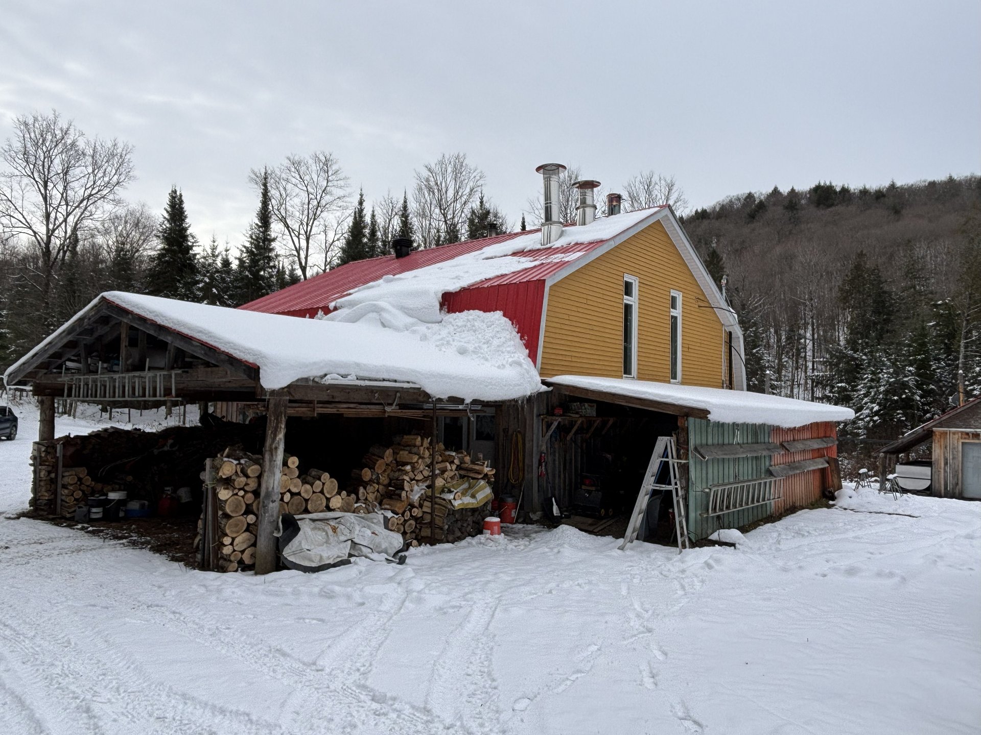 Afficher toute la description - Inclus: 1 réfrigérateur, cuisinière, lave-vaisselle, luminaires, toute le système pour le sirop d'érable,cordes de bois et le paquet de 3x6 en pruche.