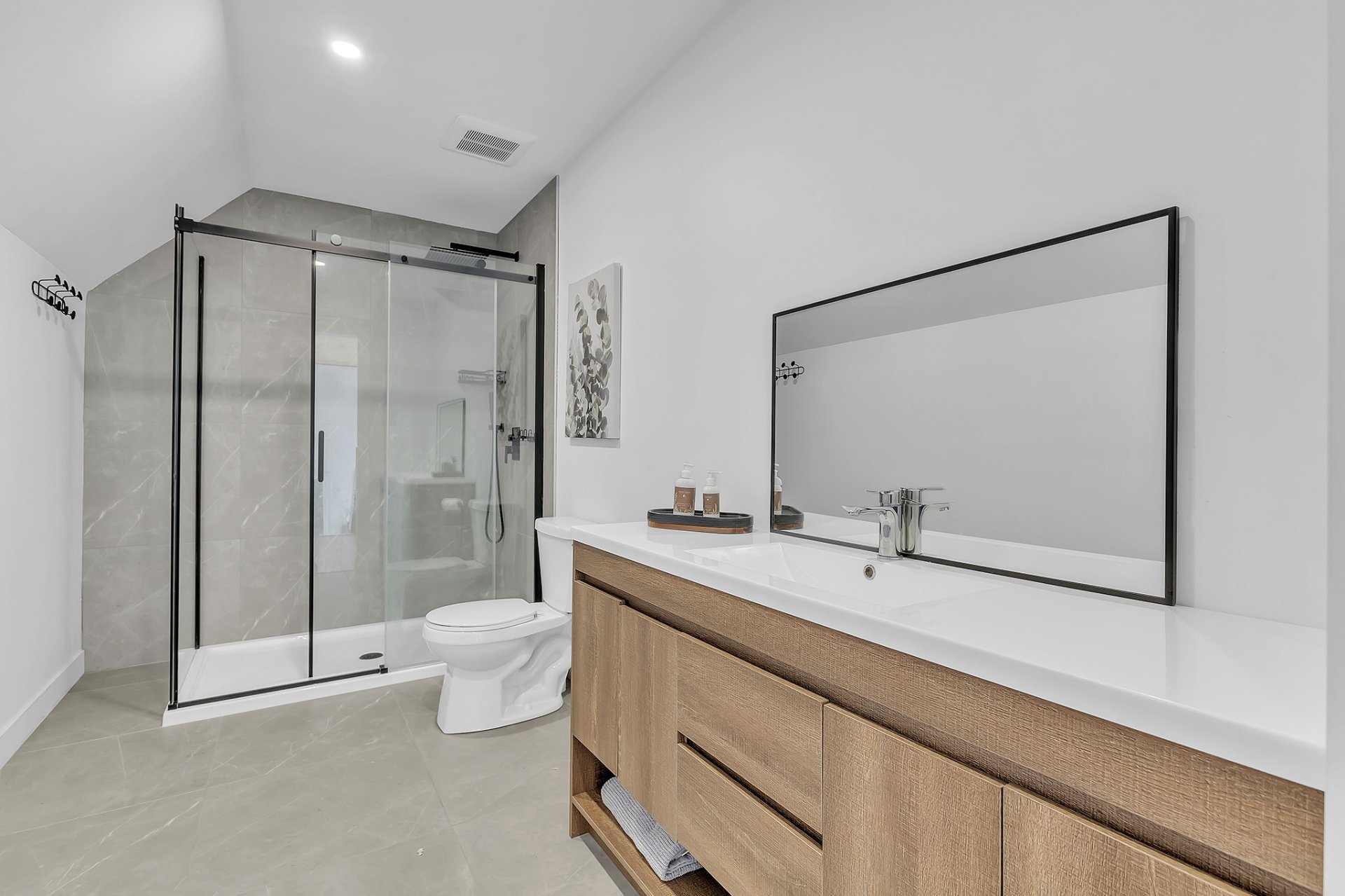 Type de chambre Dimensions Superficie Niveau Longueur Largeur Hall d'entrée 6.5x10.8 P 70.2 1er niveau/RDC 6.5 10.8 Chambre à coucher 13.7x8.3 P 113.71 1er niveau/RDC 13.7 8.3 Salle d'eau 5.8x4.8 P 27.84 1er niveau/RDC 5.8 4.8 Cuisine 16.7x15.7 P 262.19 1er niveau/RDC 16.7 15.7 Salon 13.4x15.7 P 210.38 1er niveau/RDC 13.4 15.7 Chambre à coucher principale 15.9x11.6 P 184.44 2ième étage 15.9 11.6 Salle de bains 12.5x6.4 P 80 2ième étage 12.5 6.4 Salle familiale 18.2x12.6 P 229.32 Sous-sol 18.2 12.6 Salle de lavage 6.10x5.3 P 32.33 Sous-sol 6.10 5.3 Chambre à coucher 12.0x8.3 P 99.6 Sous-sol 12.0 8.3 Chambre à coucher 13.0x8.3 P 107.9 Sous-sol 13.0 8.3 Salle de bains 6.9x9.7 P 66.93 Sous-sol 6.9 9.7 Rangement 24.0x6.7 P 160.8 Sous-sol 24.0 6.7
