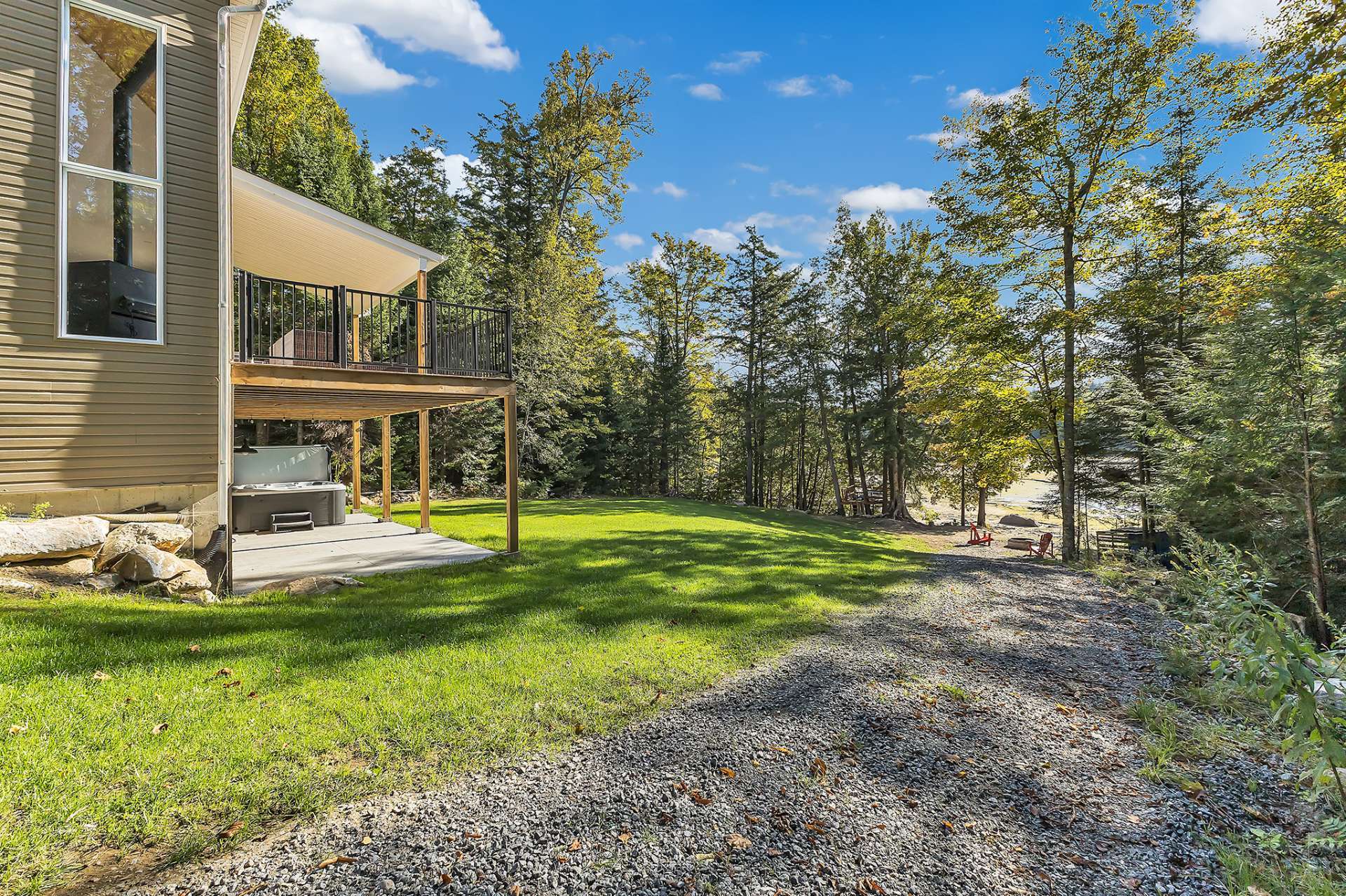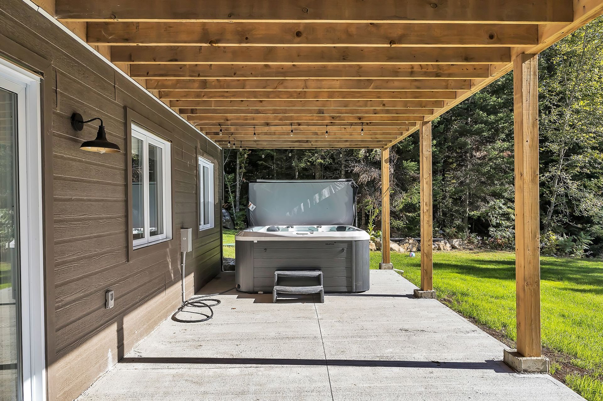 Afficher toute la description - Inclus: Pole, rideaux, store, luminaire, spa et accessoire, remise amovible bord de l'eau.