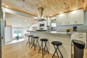 Afficher toute la description - Inclus: Cuisinière encastrée, plaque chauffante, réfrigérateur, lave-vaisselle, micro-ondes encastré, stores et rideaux, gazebo, chauffe-eau, poêle à bois (combustion lente), deux remises, baril décoratif dans le salon, tablettes et bar dans le salon, unité de chauffage au propane dans un des garages, tablette dans le garage, quai, support à kayak, lampe UV, fontaine d'eau dans la rivière, air climatisé pour une fenêtre, set patio extérieur dans le gazebo.