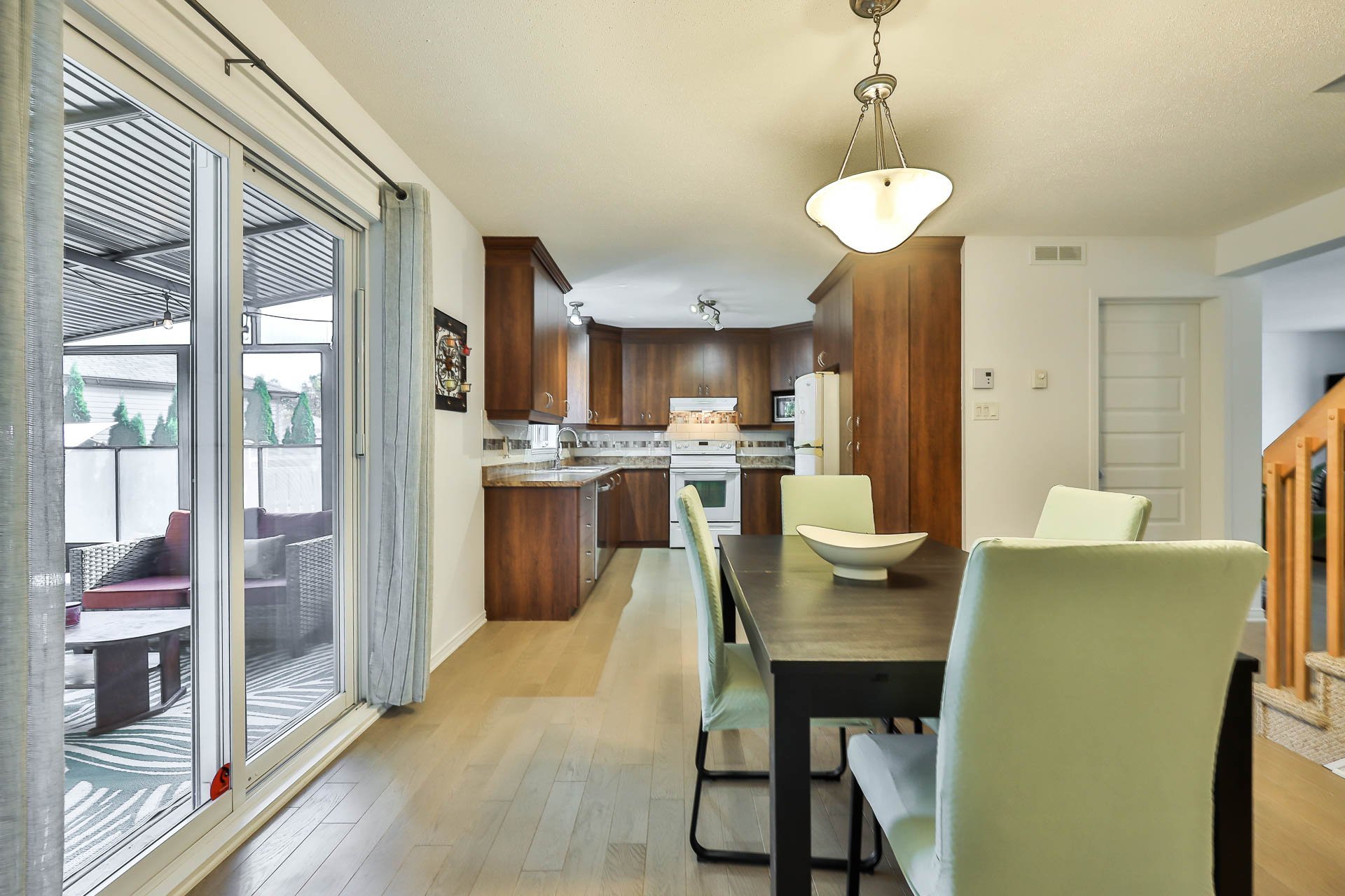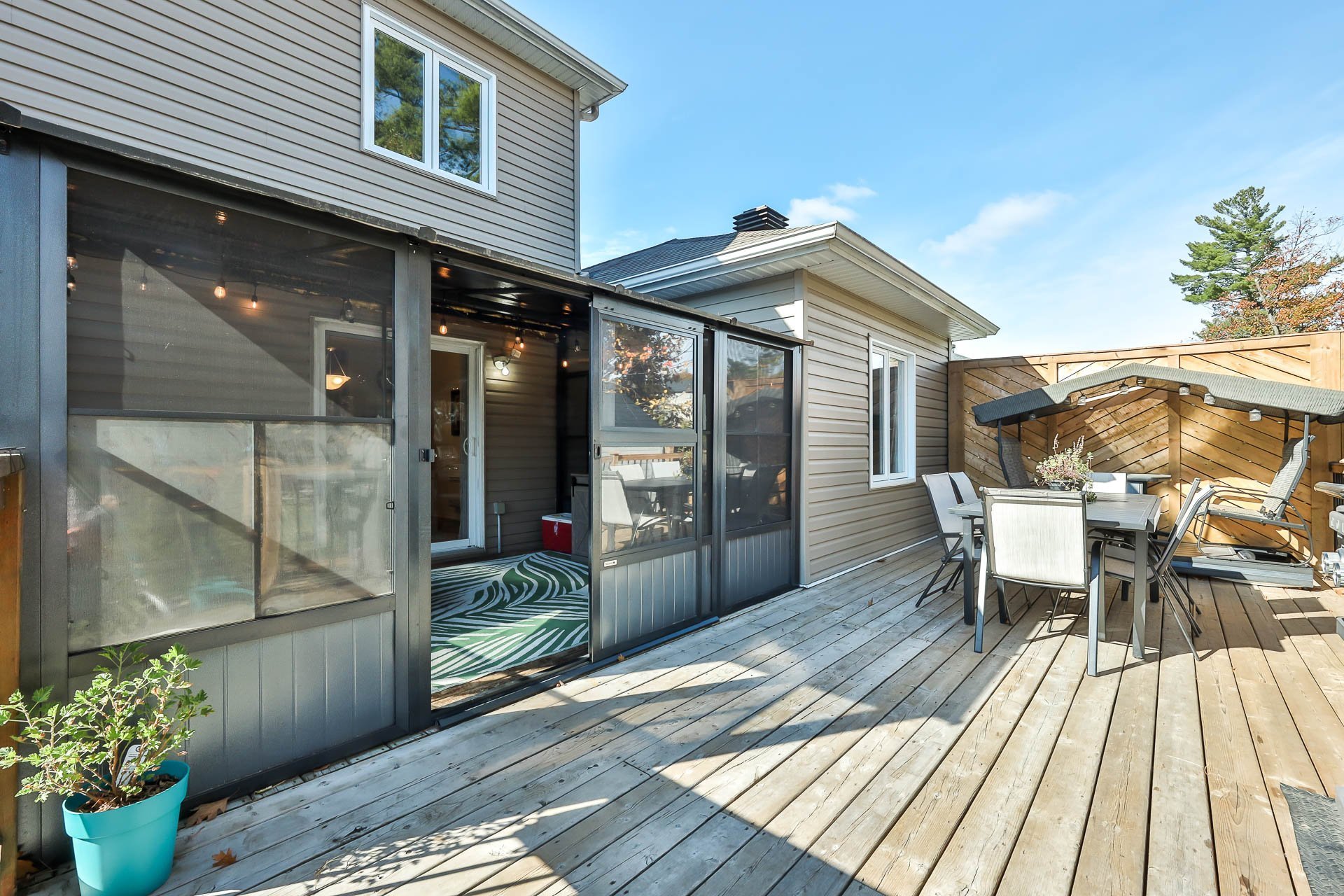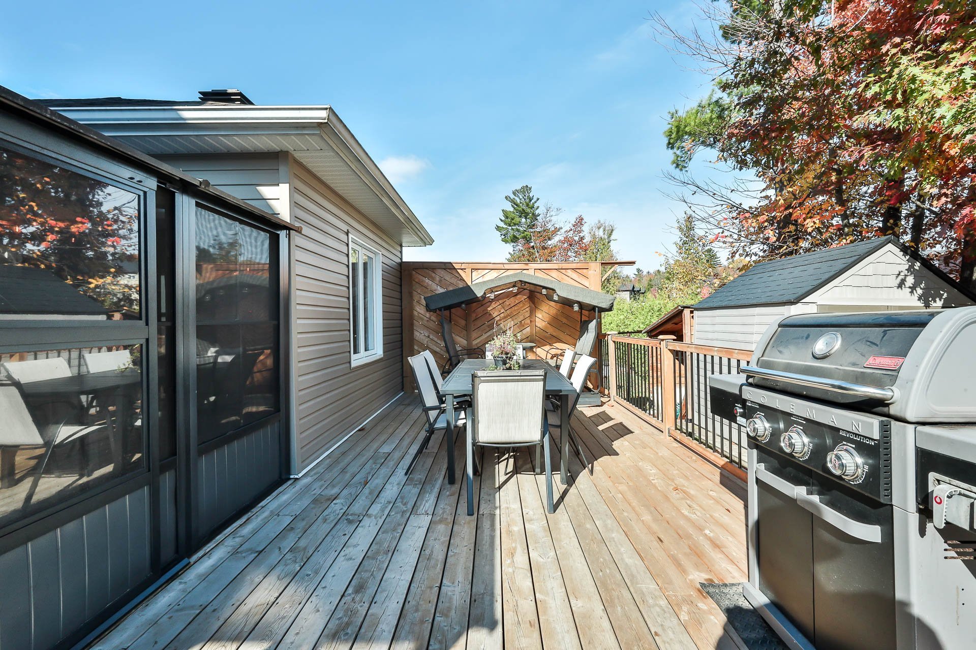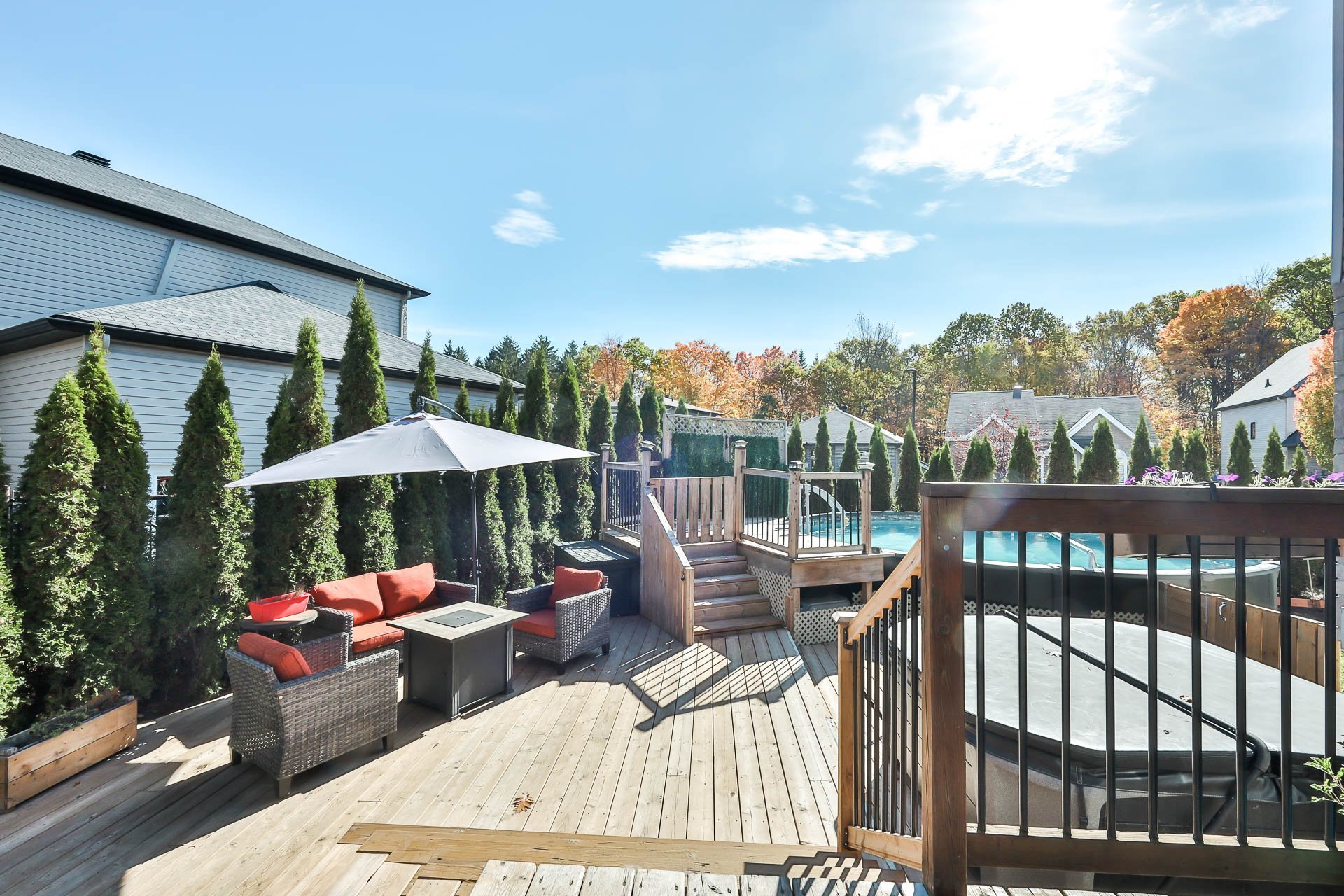 Afficher toute la description - Inclus: luminaires, chauffe-eau, lave-vaisselle x2, échangeur d'air, poles, rideaux, stores, tringles, cuisinière x2, frigidaire x2, hotte de cuisine x2, garde-robe chambre à coucher au rez-de-chaussée, piscine et accessoires, chauffe-eau piscine, cabanon, gazebo, rangement à pneus garage, aspirateur central et accessoire, ouvre-porte électrique garage, air climatisé mural, tous les supports à téléviseurs, foyer électrique dans la SDB du haut