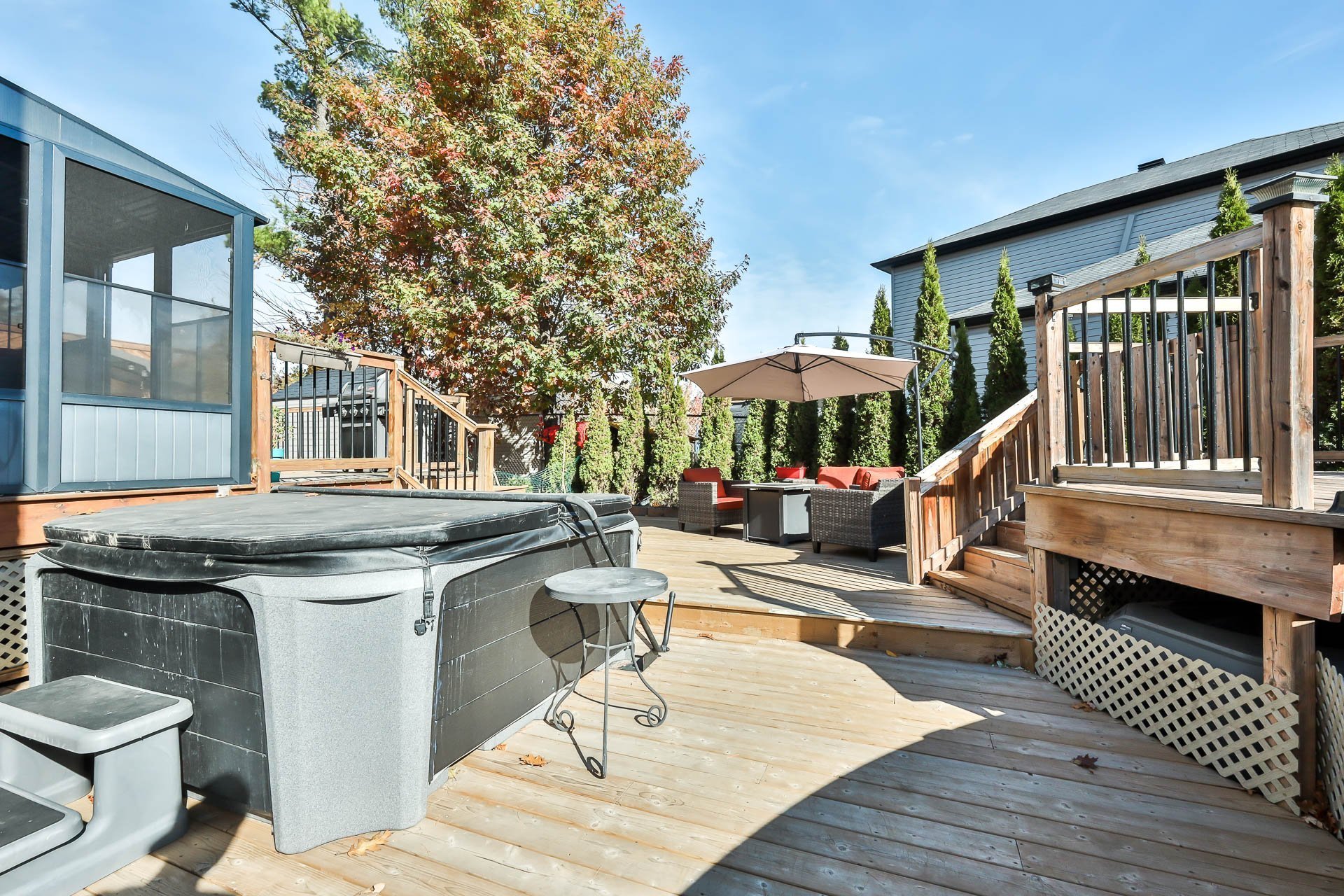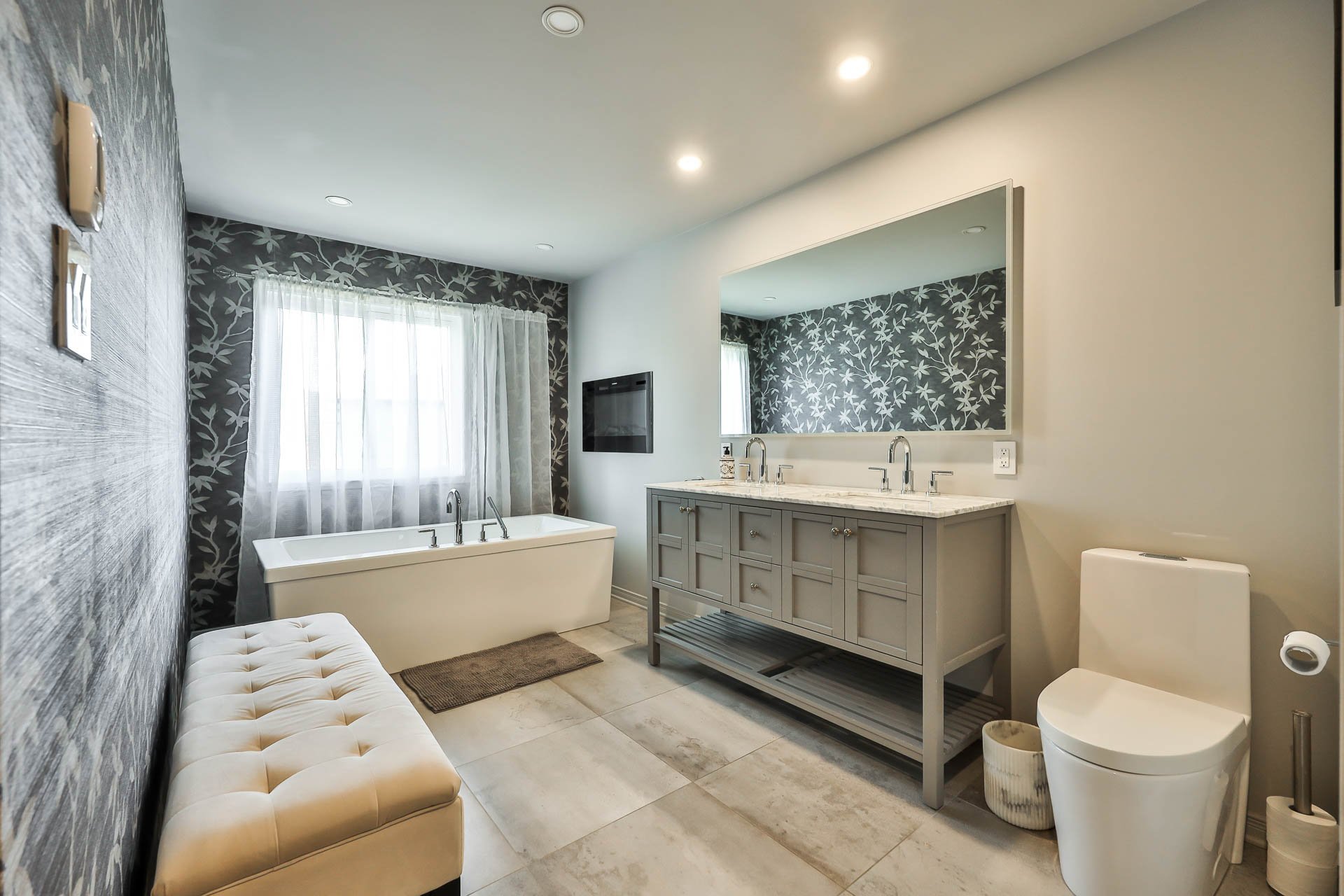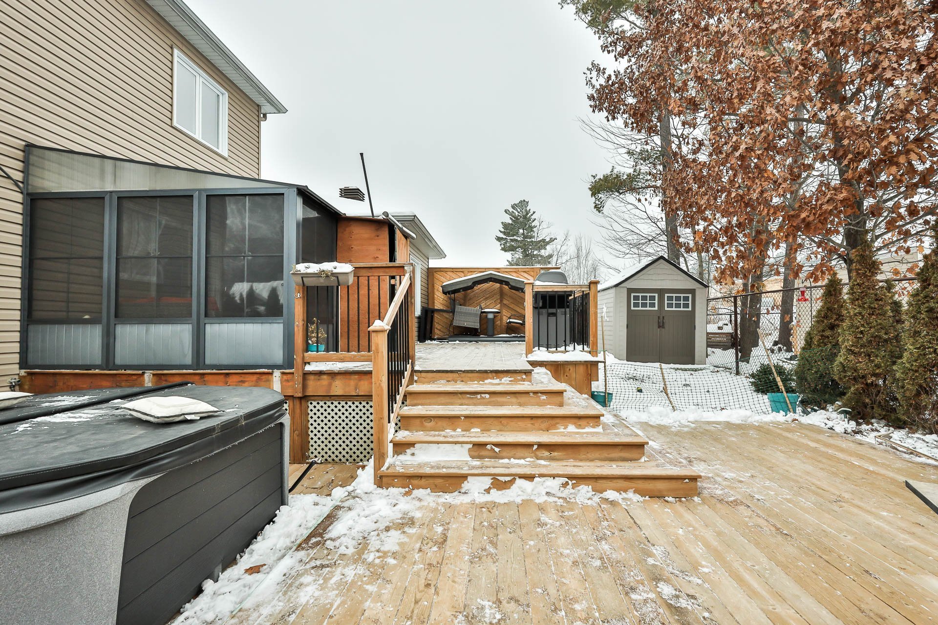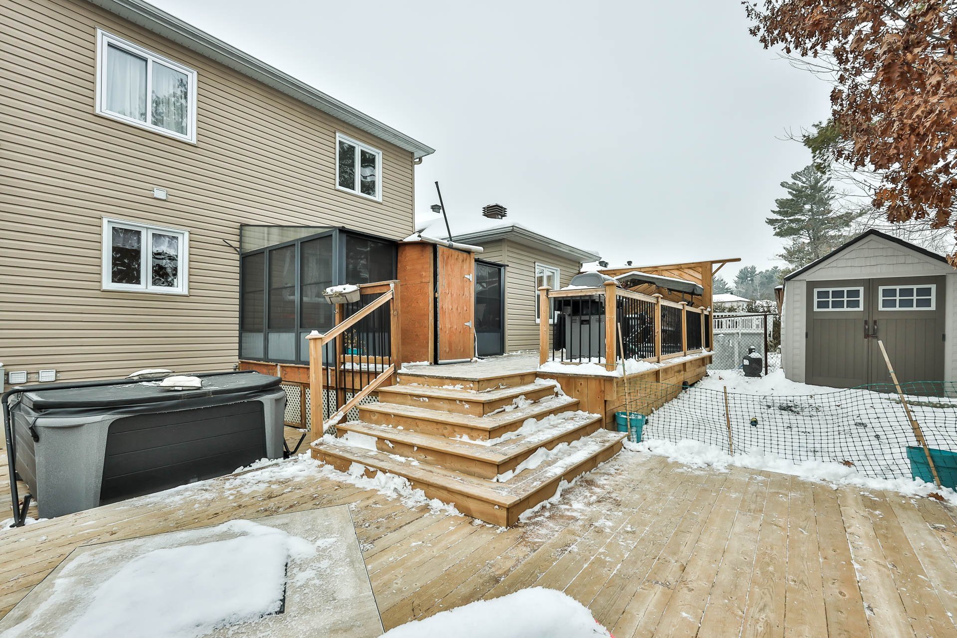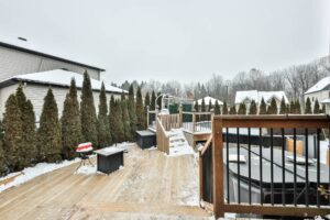- Exclus: spa et accessoire, kit atelier garage et ses cabinets (couleur noir), foyer propane extérieur, armoire grise dans la salle de bains du haut.