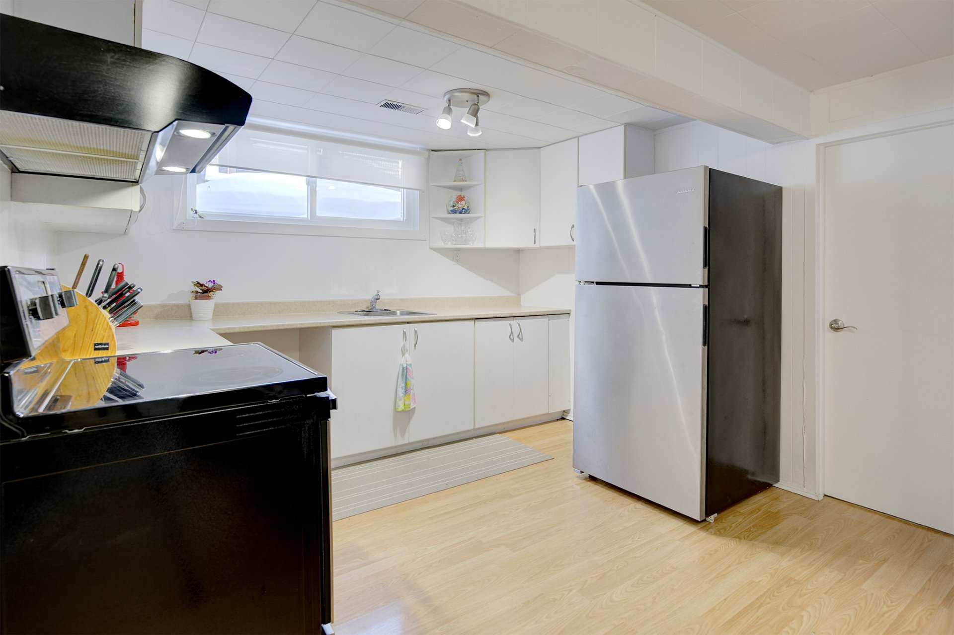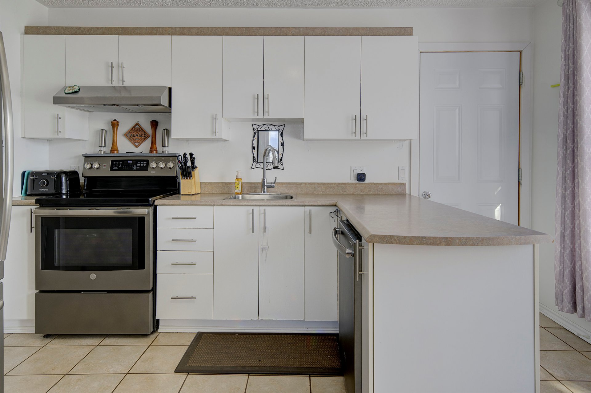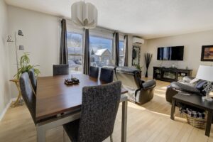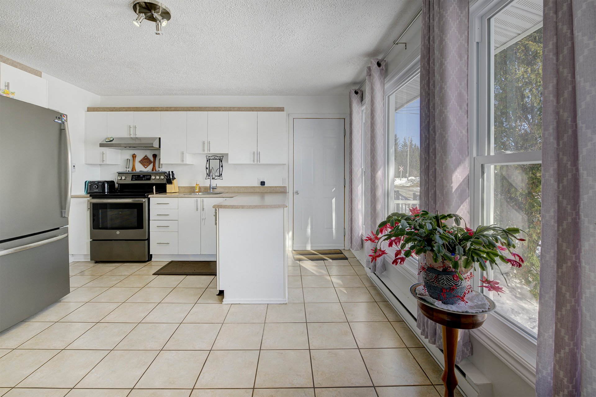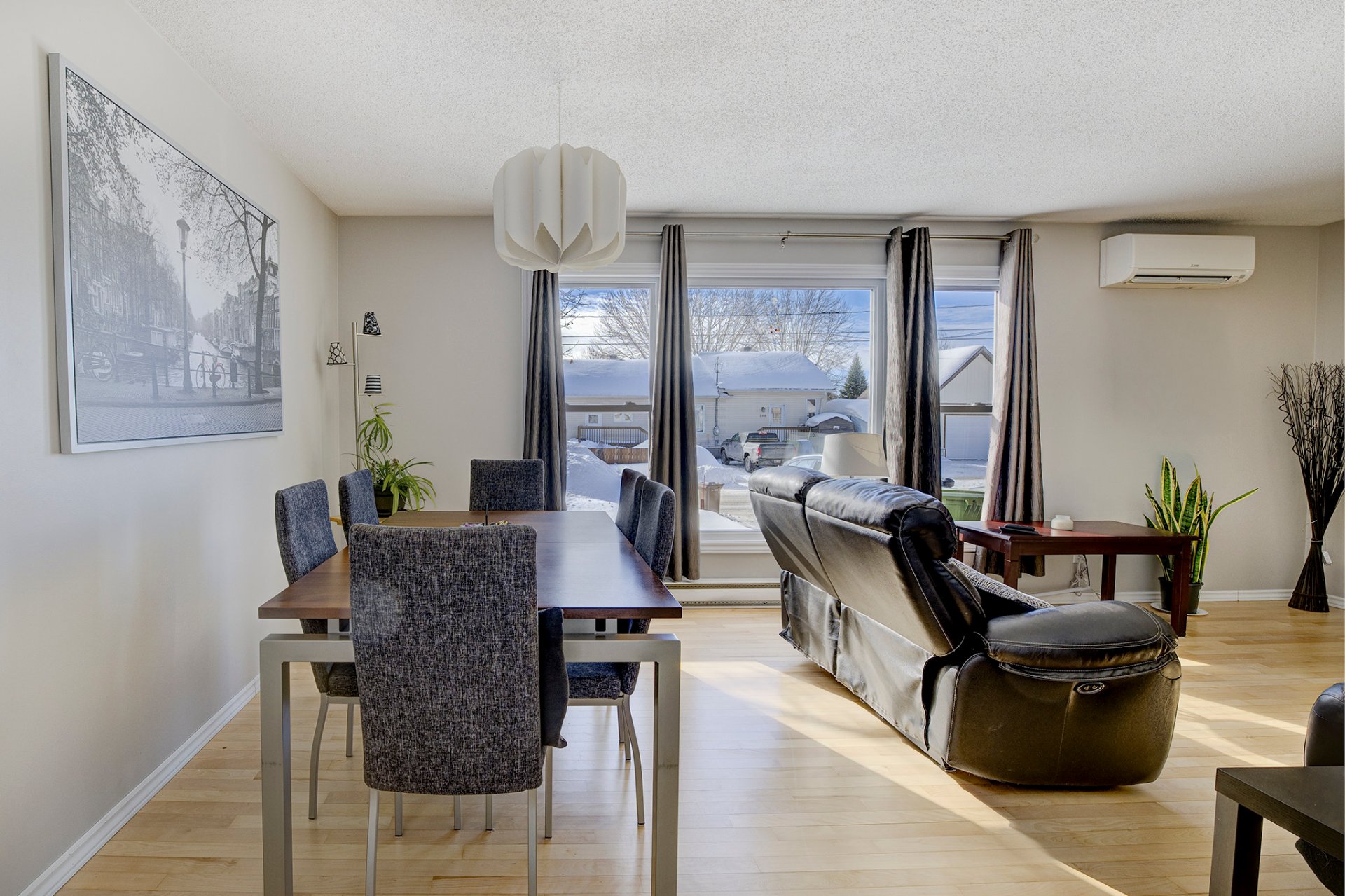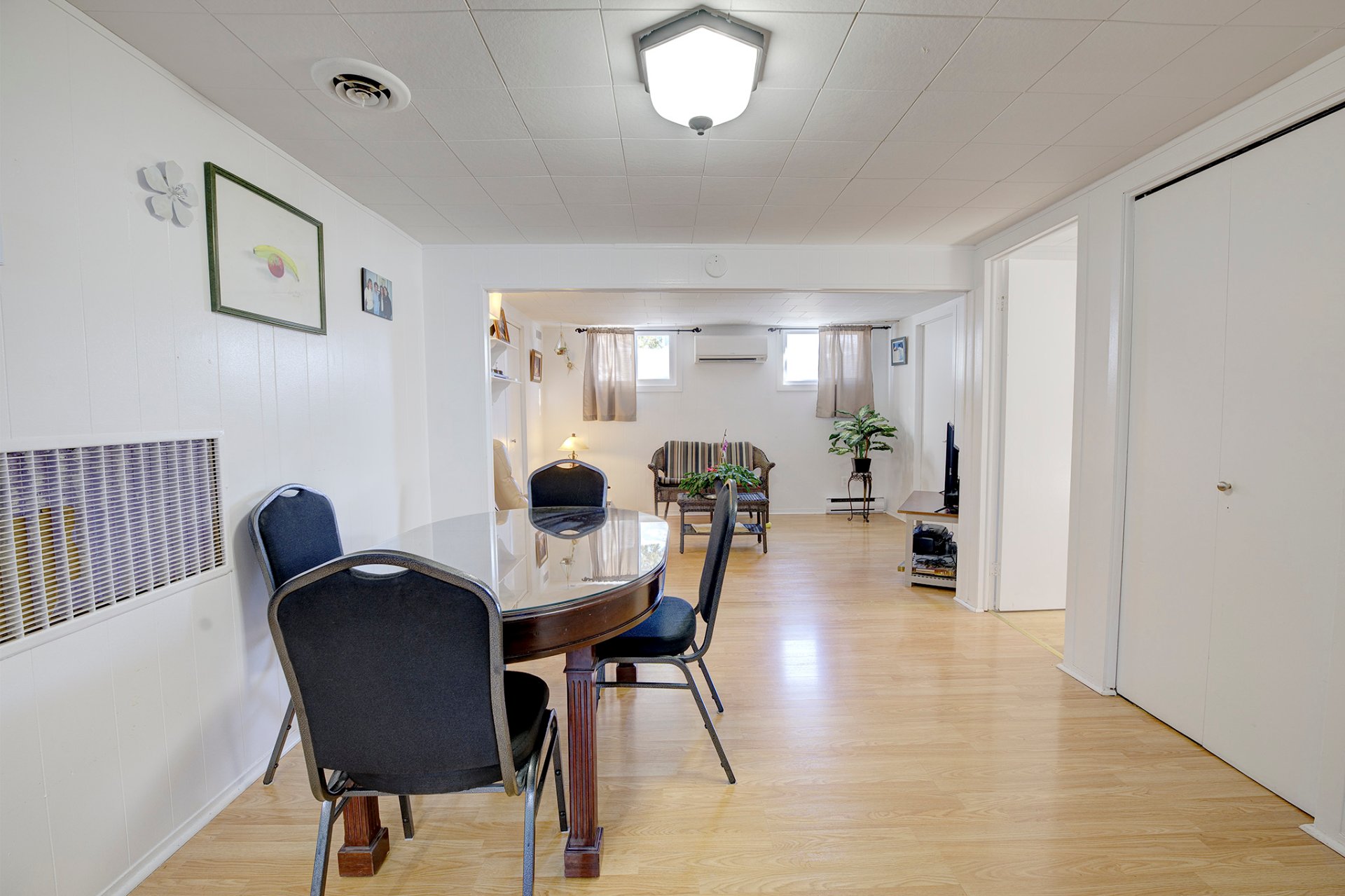 Afficher toute la description - Inclus: Thermopompe murale, réservoir d'eau chaude, échangeur d'air, rideaux, stores, tringles, remise, lave-vaisselle