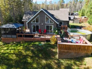 Afficher toute la description - Inclus: Cuisinière, frigo, lave-vaisselle, SPA, poulailler, piscine et accessoires, micro-ondes hotte, ouvre-porte garage, stores, laveuse, sécheuse, quai, aspirateur central et accessoires