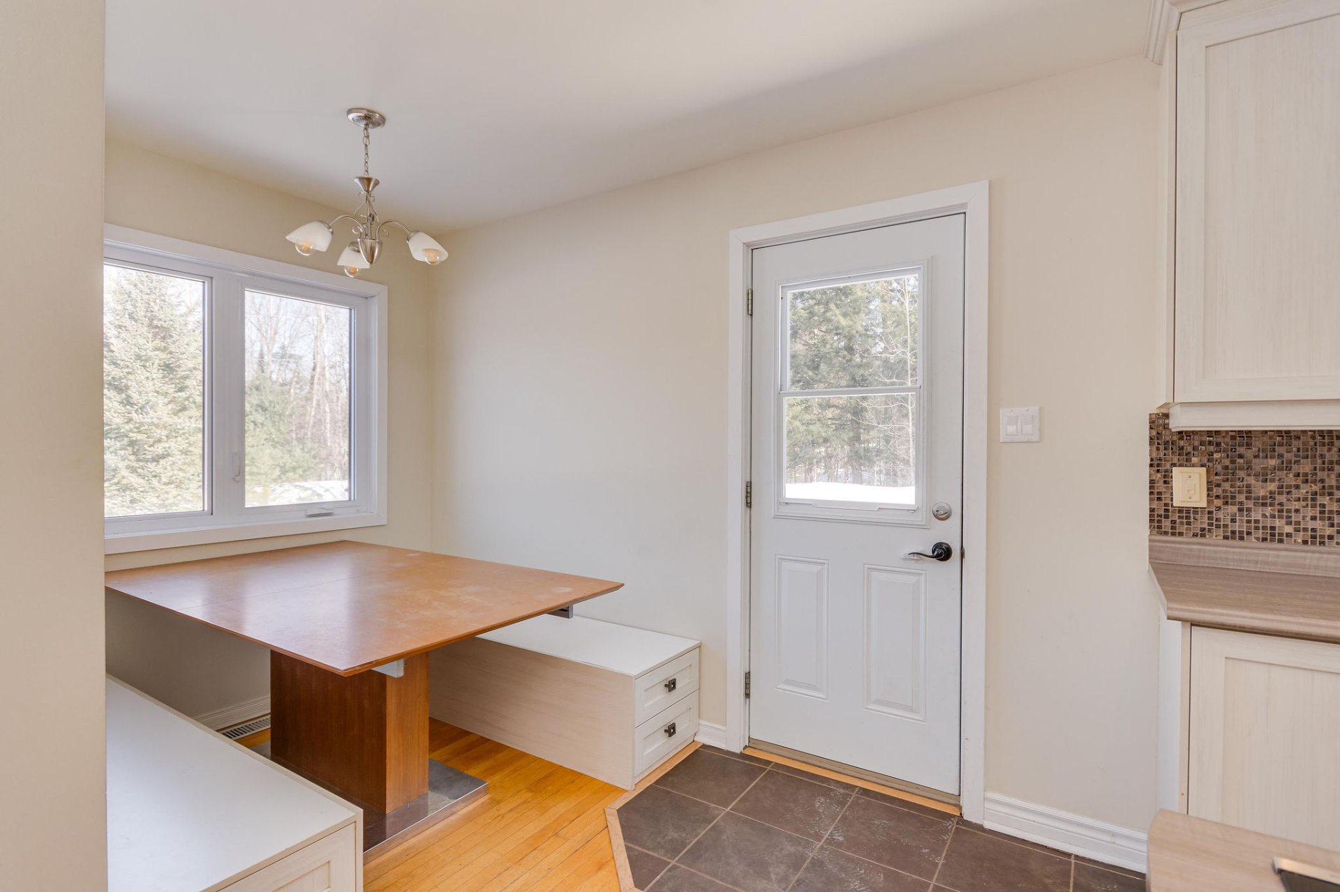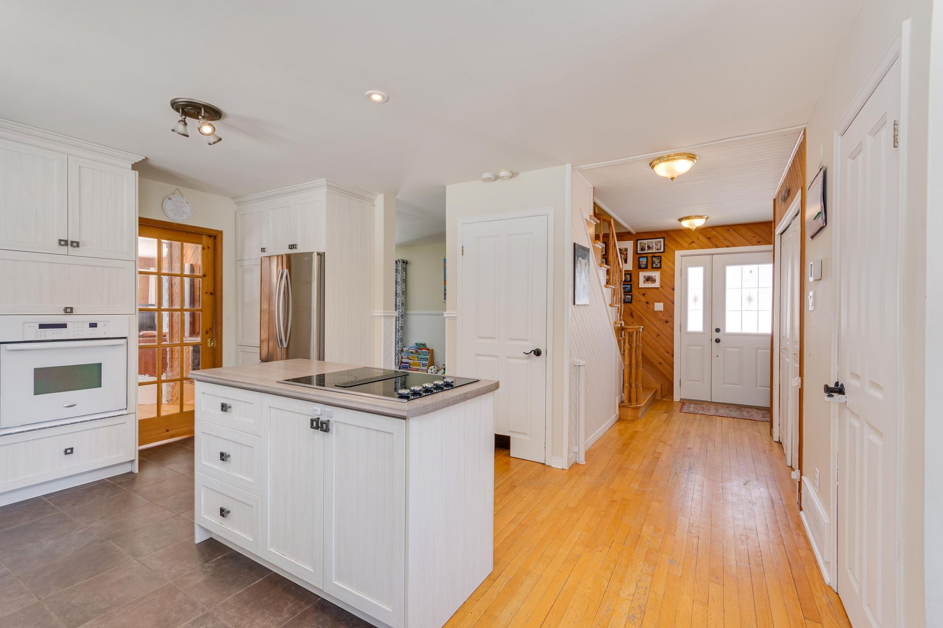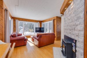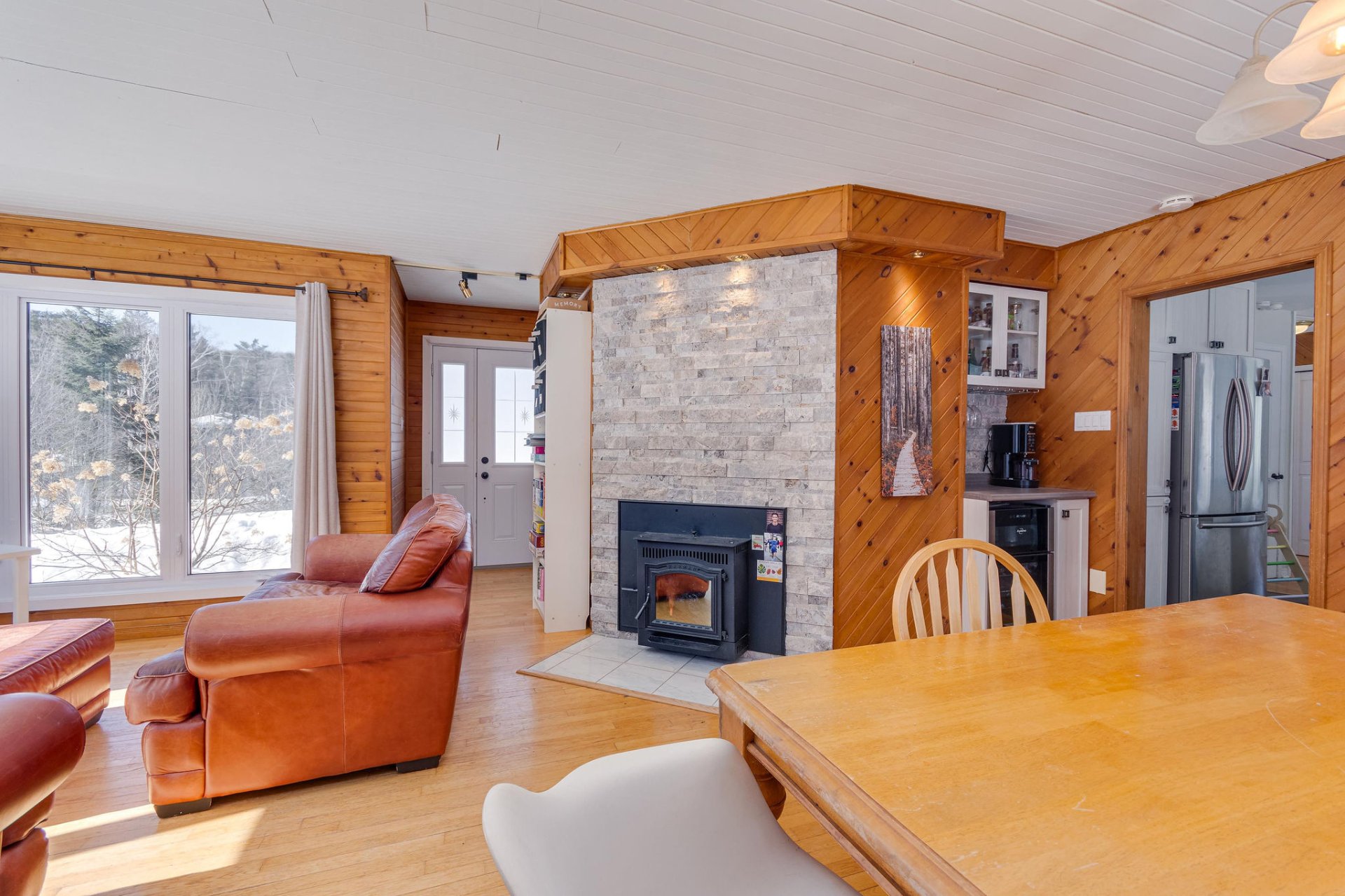 Afficher toute la description - Inclus: Lave-vaisselle, four encastré, plaque chauffante, banquette (coin repas),aspirateur central et accessoires, fournaise, chauffe-eau, adoucisseur d'eau, thermopompe, poêle granule.